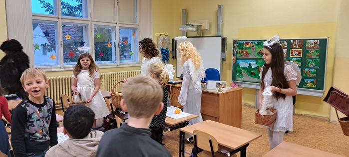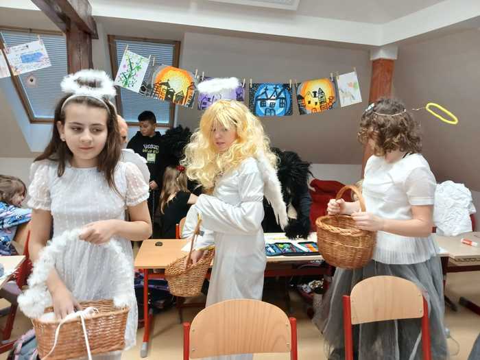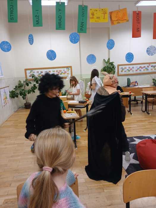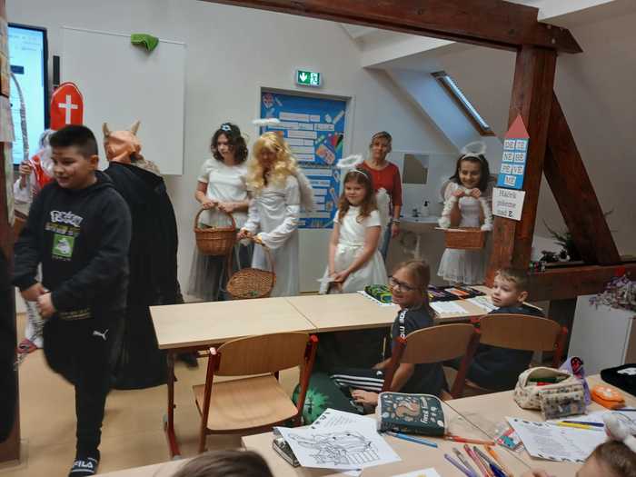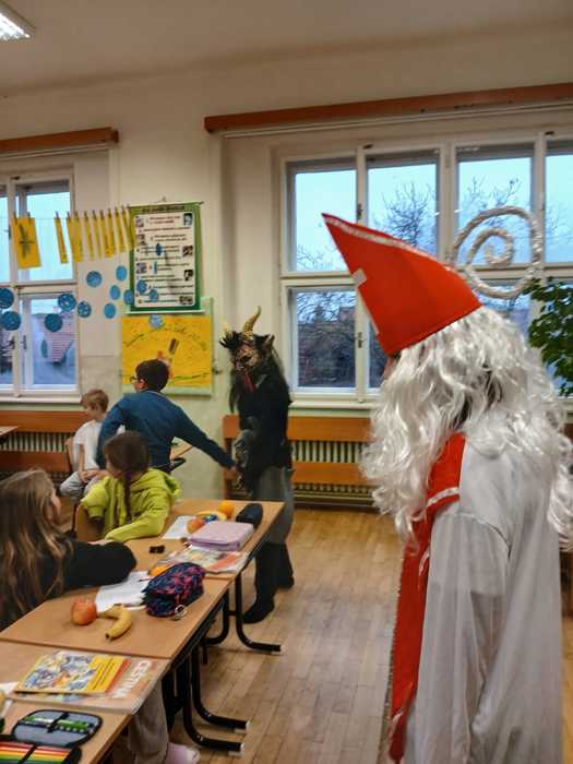 Páťáci připravili tradičního Mikuláše a postarali se tak o příjemnou předvánoční atmosféru. V kostýmech Mikuláše, andělů a čertů obcházeli třídy, kde dětem řekli, kdo během roku zlobil a kdo byl hodný. Po krátké návštěvě předali žákům nadílku, sladkosti a ovoce, a pokračovali dál do dalších tříd. Akci zvládli zodpovědně a s úsměvem, takže celý den měl veselý a sváteční nádech.